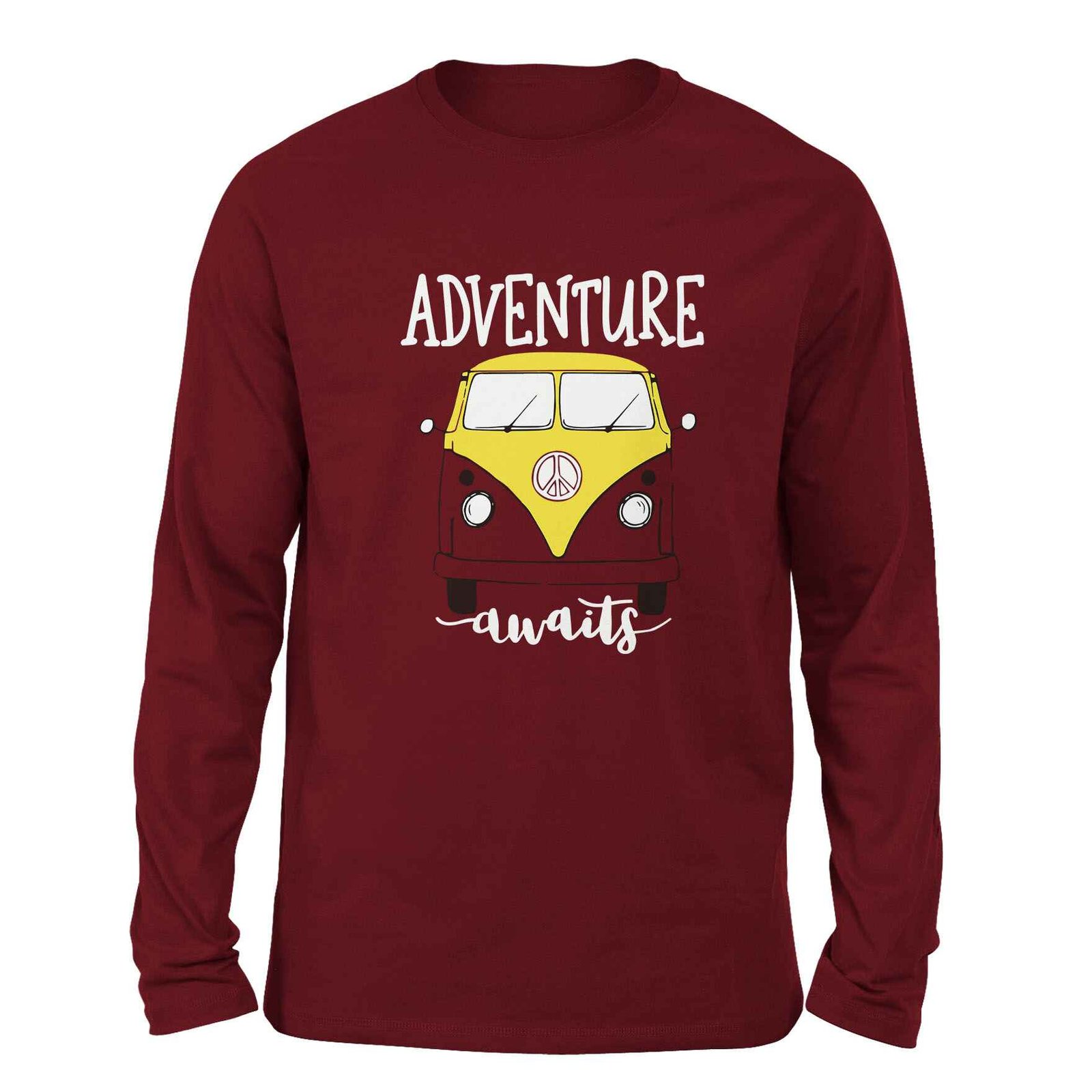 Product Name: Adventure Awaits Maroon color Full Sleeve t-shirt