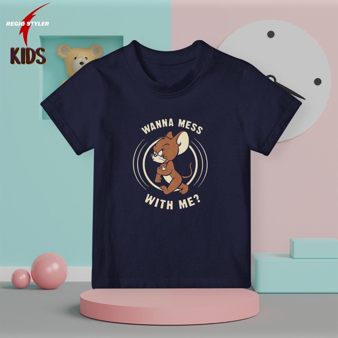 wanna mess kids navy color jerry theme t-shirt
