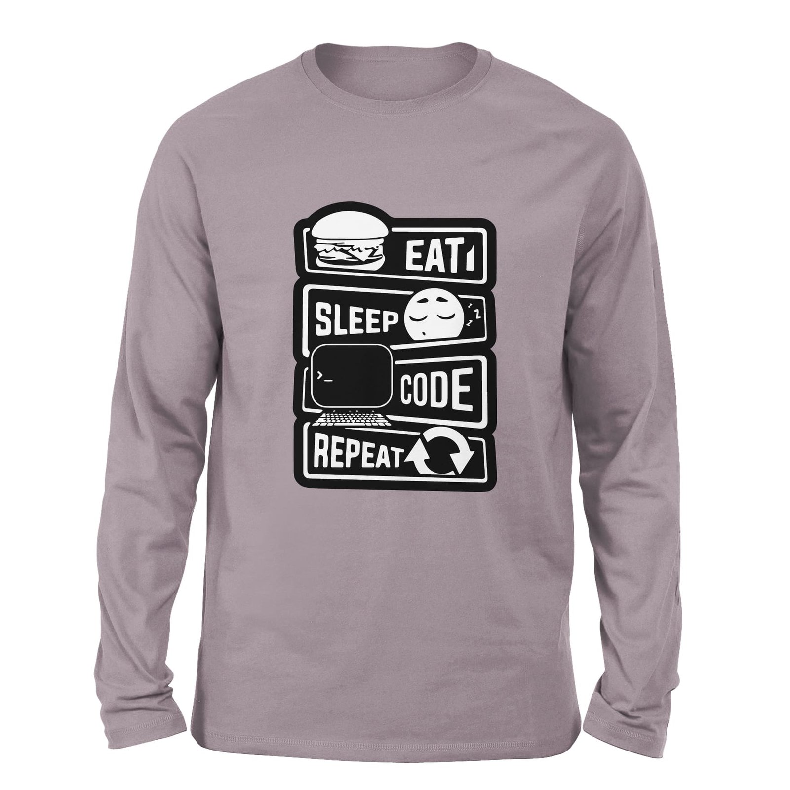 Eat Sleep Code Repeat Gray Lilac Full Sleeve t-shirt